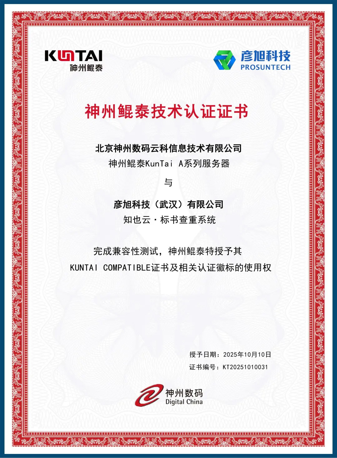 近日,神州数码旗下自主品牌神州鲲泰与彦旭科技达成深度合作,正式推出神州鲲泰知也云™标书 AI 查重系统联合解决方案。依托神州鲲泰在国产智算基础设施领域的全栈布局,以及彦旭科技 “知也云™标书 AI 查重系统” 的成熟技术积淀,双方共同打造 “国产算力底座 + AI 标书查重引擎” 一体化方案,精准响应国家信创国产化战略,助力招投标行业数字化转型。