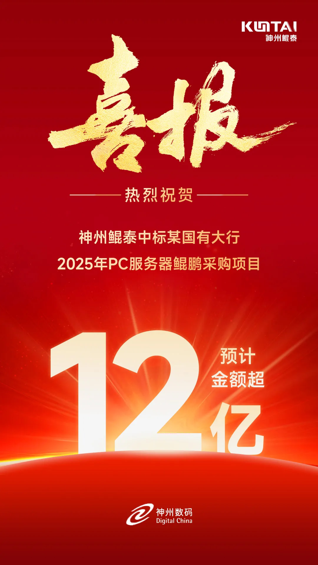 超12亿!神州鲲泰中标某国有大行2025年PC服务器鲲鹏采购项目